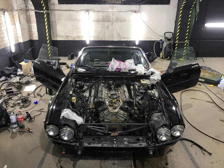 Šis, vienas iš ilgiausiai trukusių ir sudėtingiausių projektų - JAGUAR XJS V12. Kliento noru buvo atliktas maksimalus darbų paketas, kad automobilis susigražintų savo žavesį. Na ką gi, kimbame į darbus!